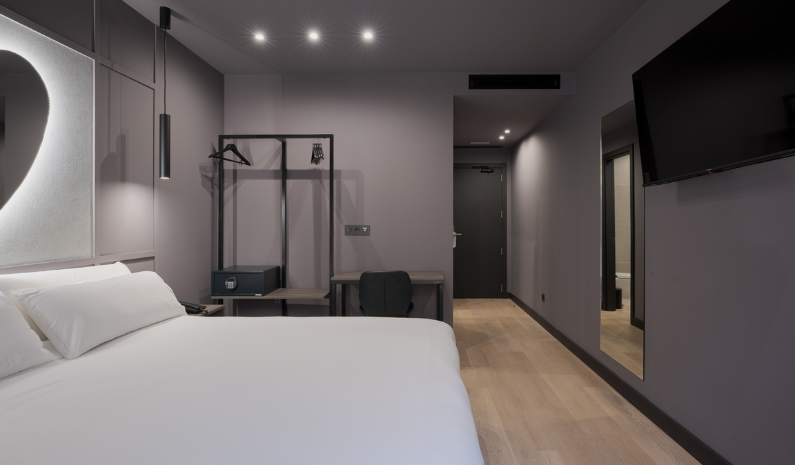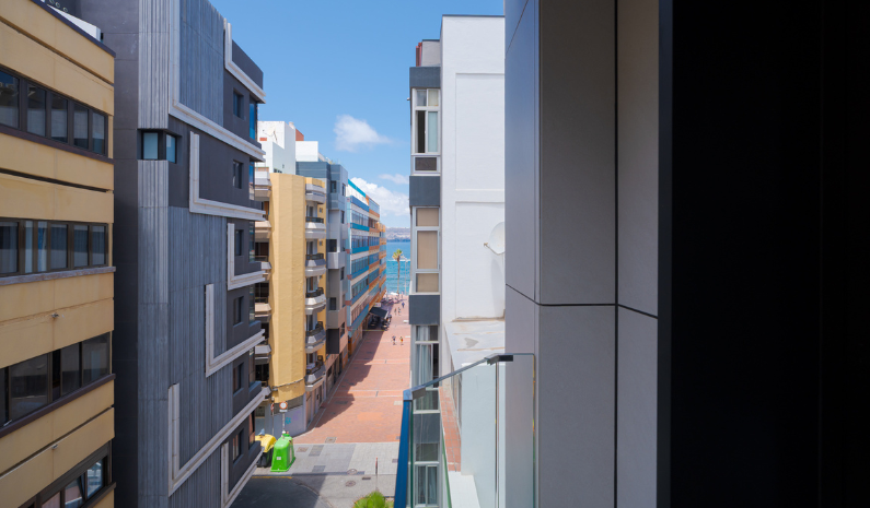 Pensada para quienes buscan una experiencia más exclusiva, esta habitación destaca por sus vistas laterales al mar y su balcón privado. Ofrece cama dobe, aire acondicionado, Smart TV, WiFi gratuito, cafetera con cápsulas, y caja fuerte. Se complementa con amenities premium, albornoz, zapatillas y ducha efecto lluvia, creando un ambiente sofisticado y relajante. Ideal para estancias especiales o escapadas con un toque distinto frente al Atlántico.